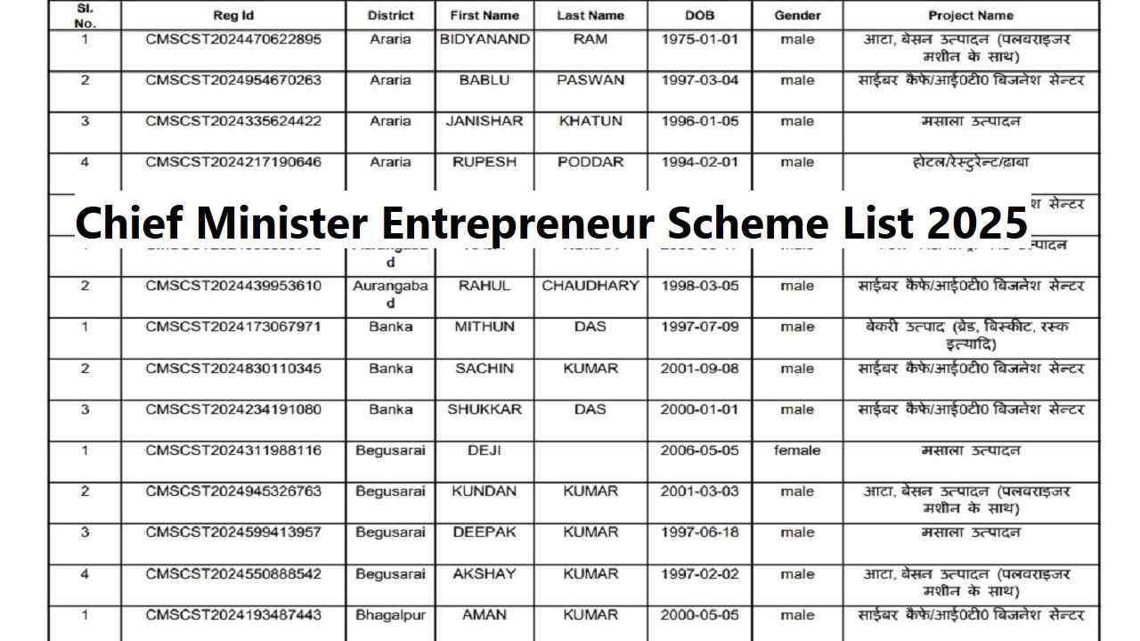 मुख्यमंत्री युवा उद्यमी योजना List: Chief Minister Entrepreneur Scheme List 2025